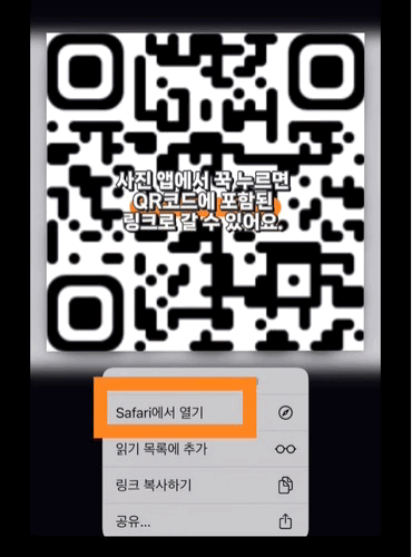 아이폰과 동일하게 찍으면 나타나는 링크나 알림을 통해