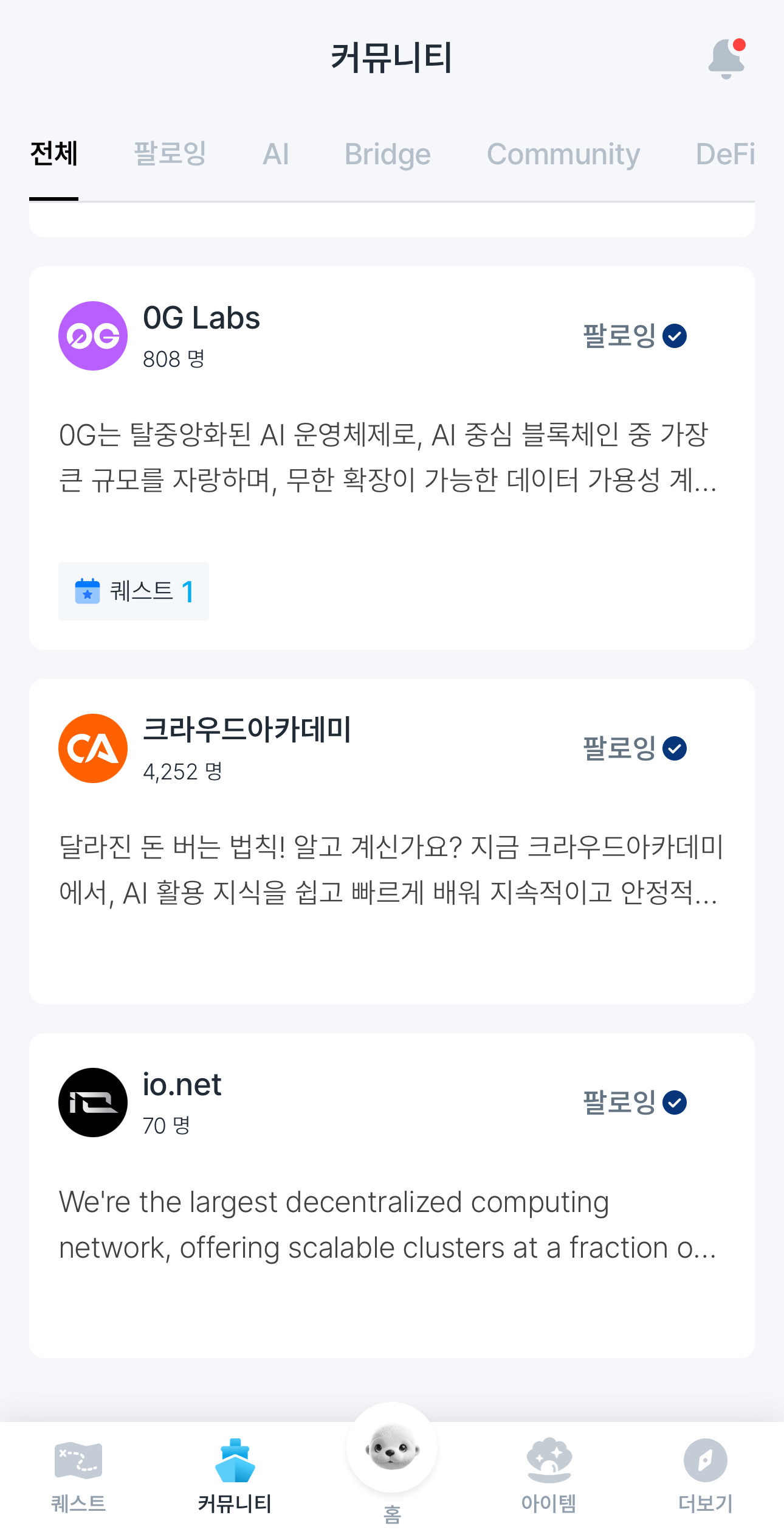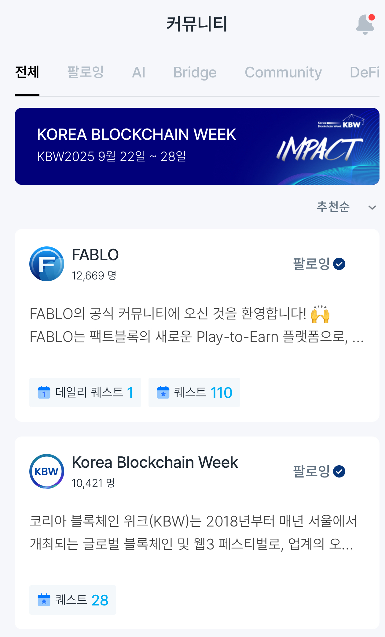 커뮤니티를 팔로우할 수도 있고요!