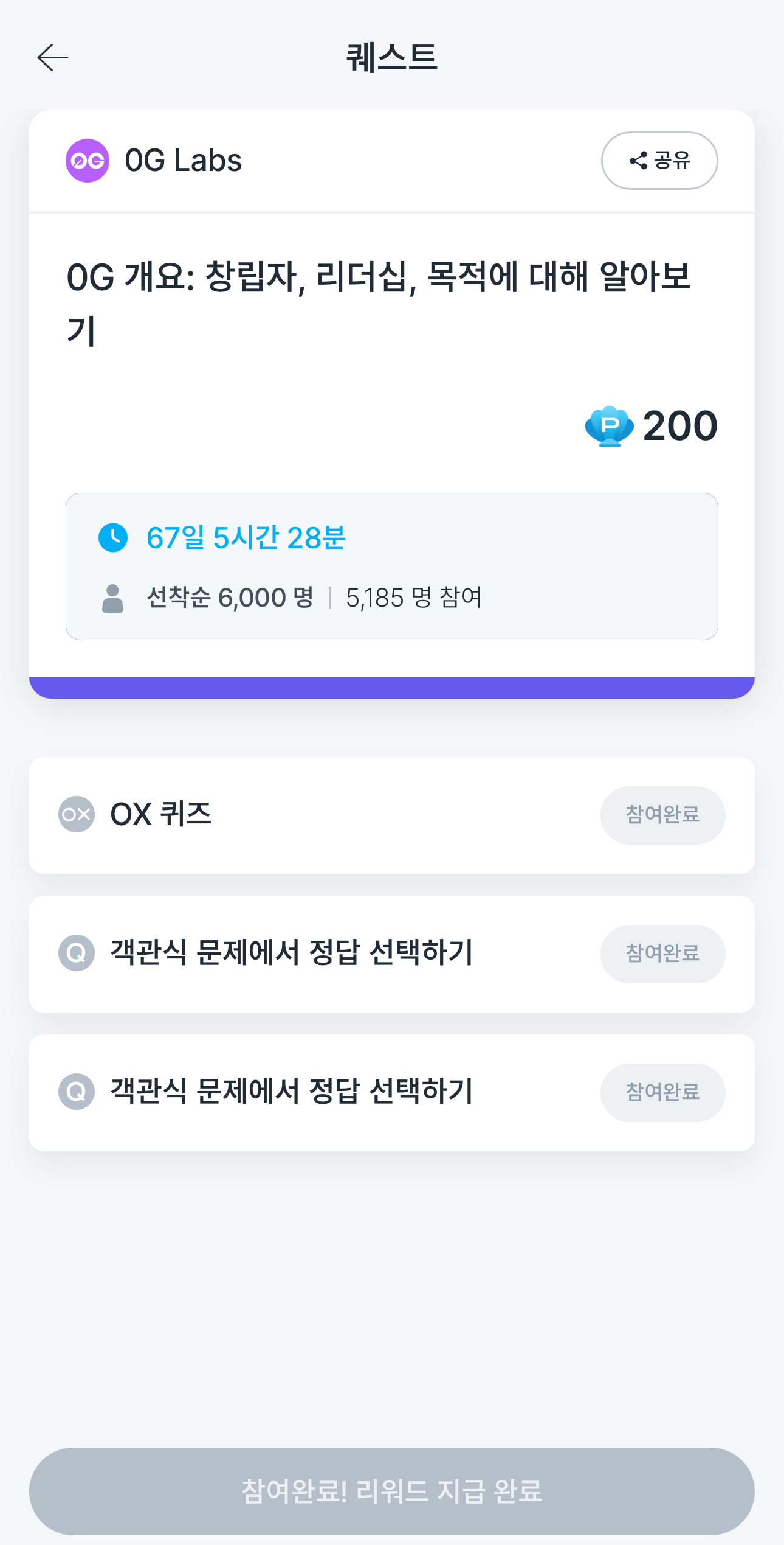 0G Labs 관련 퀴즈는 200포인트나 줬고요.