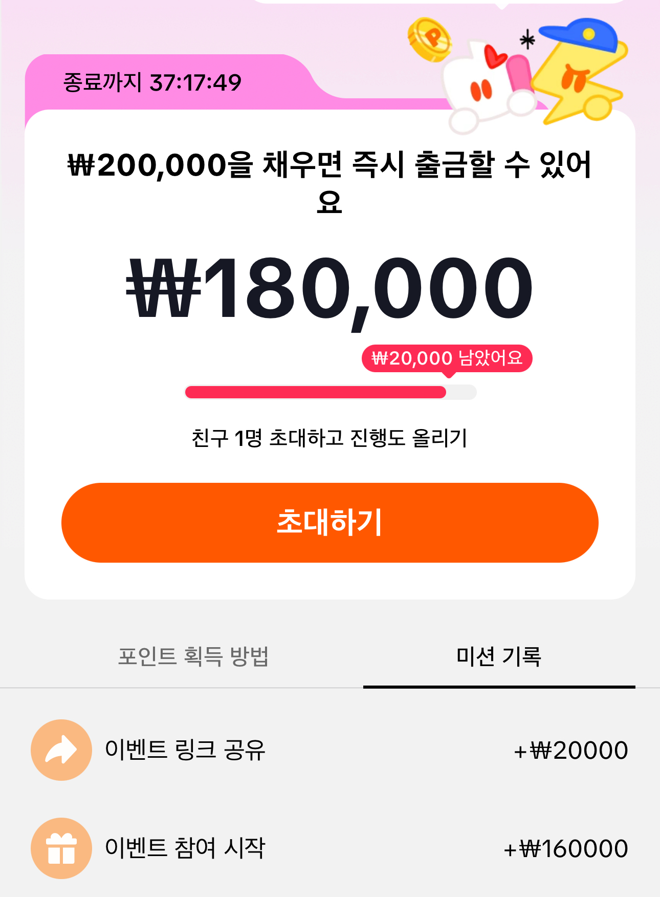 다른 미션은 친구가 가입하고 출석체크를 해야 하는데,