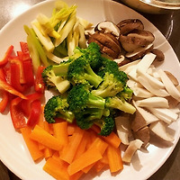 재료 : 두부 1/2모, 청경채 한 줌, 애호박 1/2개, 불린 표고버섯 4개,