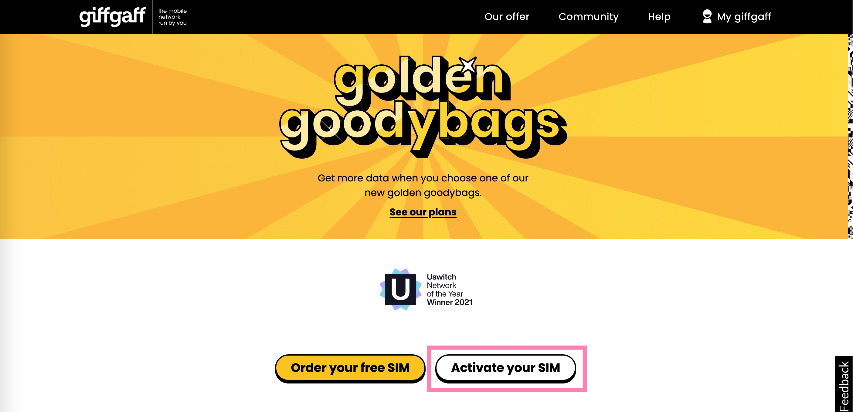 Get your giffgaff SIM card here, with free £5 credit when you join.