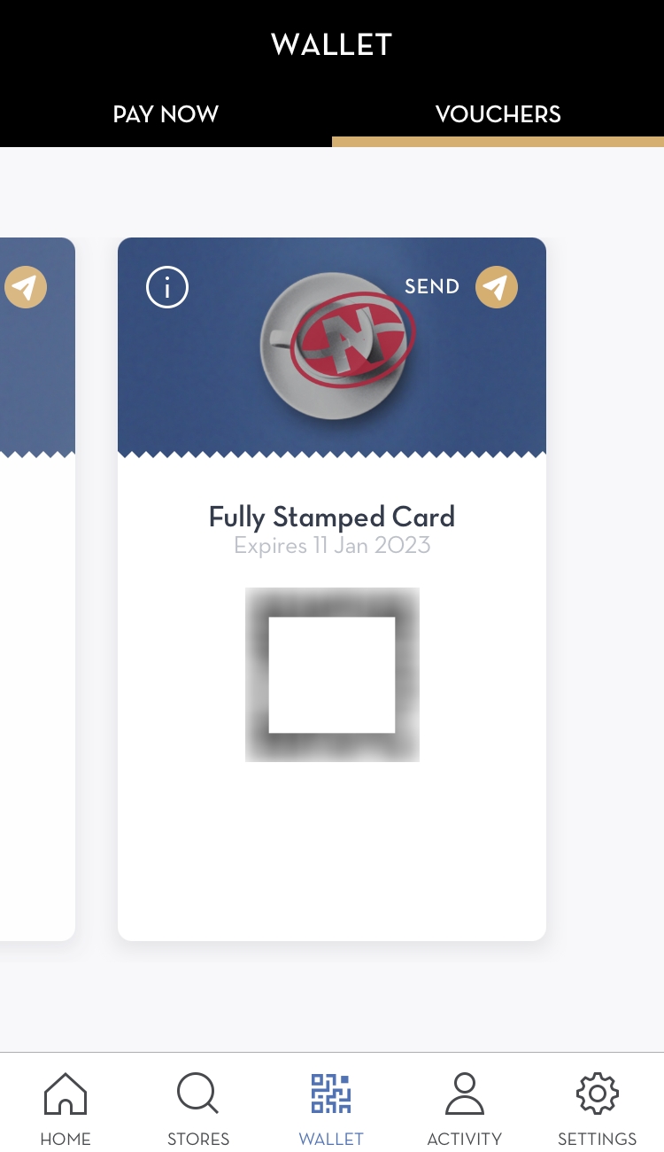 Wallet 탭에서 QR코드로 결제 (연동된 카드로 결제 혹은 스탬프온리도 선택가능해요!)