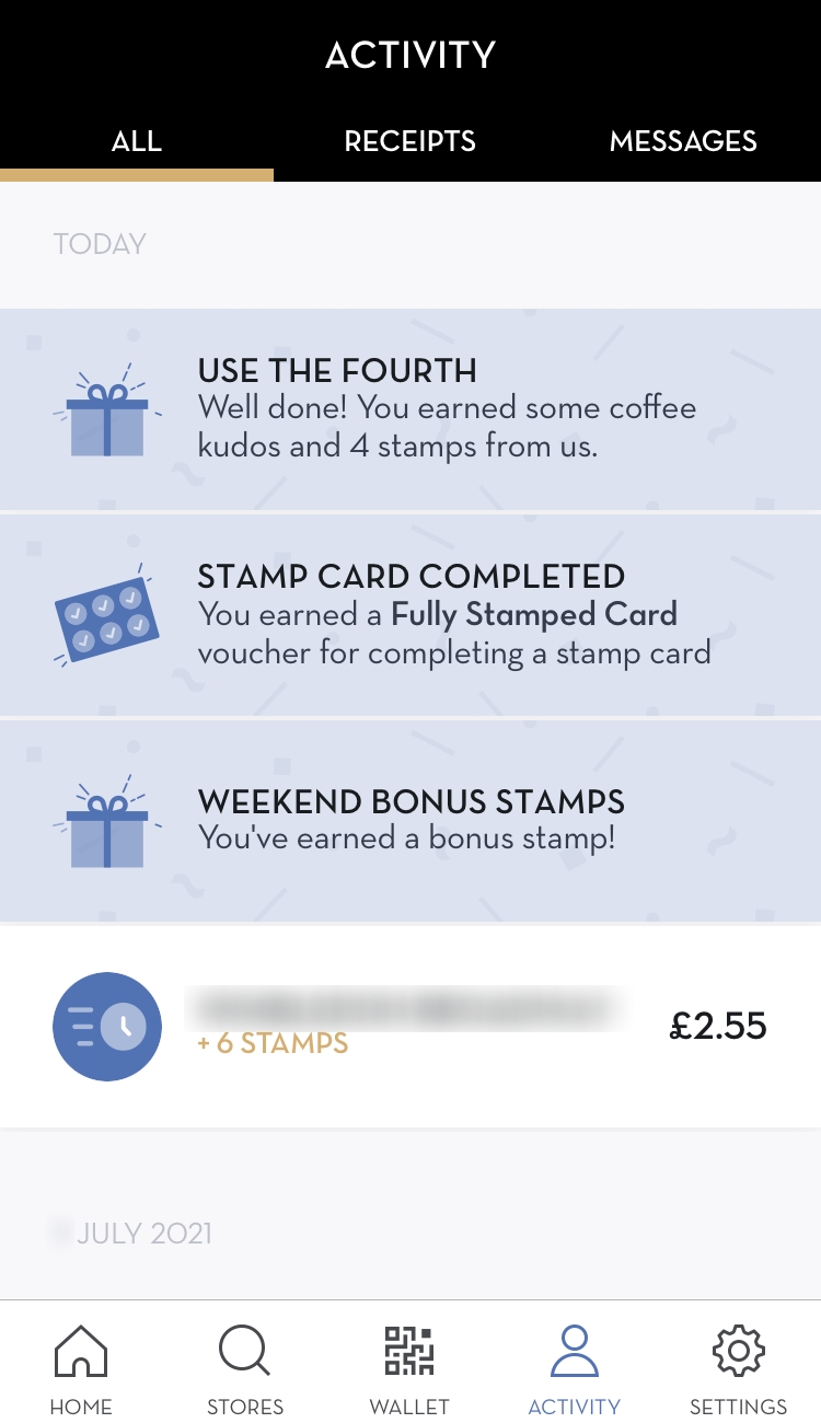 앱 들어가면 Loyalty Card 로열티 카드 스탬프 찍을 수 있는 카드랑