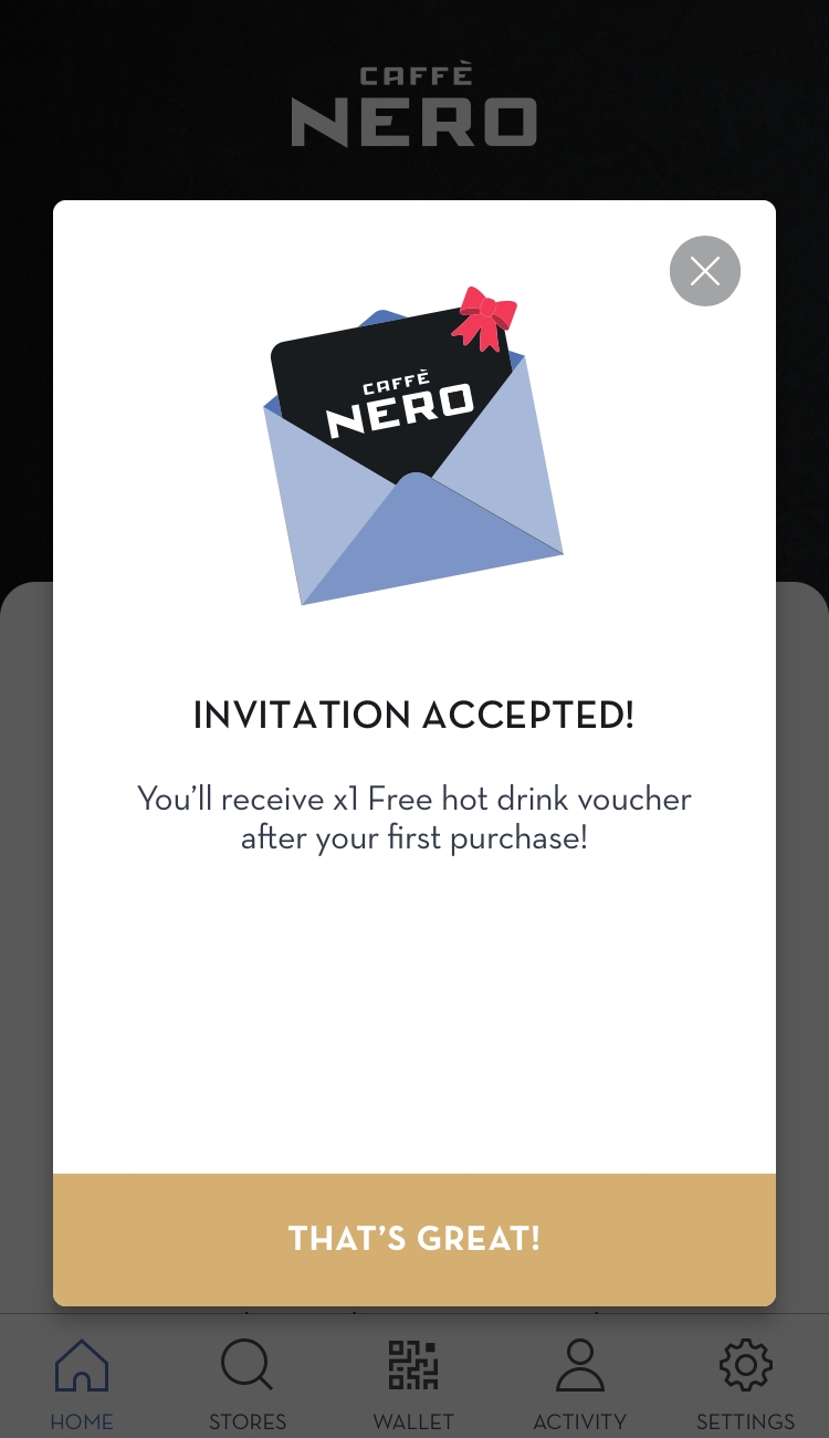 Hey! Tap on my referral link to claim x1 Free hot drink voucher after you make your first purchase at Caffè Nero using the Caffè Nero app: https://nero.app.link/LMOTNEdtFtb