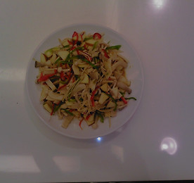 메뉴 :버섯 겨자냉채 재료: 백일송이버섯 1팩, 새송이버섯 4개, 표고버섯 6개,느타리버섯 1줌, 청피망1개, 사과 1개 소스: 연겨자 2큰술, 설탕 2큰술, 식초 2큰술, 소금 1작은술, 참기름 1작은술, 레몬즙 2작은술, 꿀 1작은술, 진간장 1작은술 1. 백일송이버섯은 가닥으로 새송이버섯은 반으로 잘라 다시 길이로 채썰어 데친다. 2. 표고버섯도 채 썰어 데치고 느타리 버섯도 데쳐서 찢는다. 3. 사과는 편으로 작게 썰어 연한 설탕물에 담갔다 건진다. 4. 피망도 채 썬다. 5. 분량의 소스를 만든다. 6. 버섯과 야채의 물기를 완전히 제거하여 소스로 버무려 보기 좋게 담아 마무리한다.