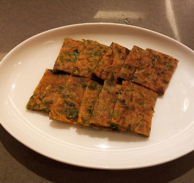 메뉴 : 녹차 자장면 재료 : 밀가루 4컵, 녹차가루 2큰술, 우엉 80g, 연근 80g, 표고버섯 3장, 양송이 5개, 당근 80g, 감자 100g, 애호박 100g, 오이1/2개 양념 : 춘장 3큰술, 식용유 3큰술, 녹말가루 1작은술, 소금약간 [만들기] 1. 밀가루와 녹차가루 소금을 섞어서 체에 내려 되직하게 반죽한 다음 젖은 행주에 싸서 둔다. 2. 준비한 야채를 작은 깍두기 모양으로 썰어서 준비해 둔다. 3. 오이를 곱게 채썰어 둔다. 4. 반죽해 둔 밀가루를 밀대로 밀어서 0.5Cm 두께로 썰어서 마른 가루를 솔솔 뿌려 펼쳐둔다. 5. 냄비에 식용유를 넉넉하게 두르고 춘장을 넣어 약한 불에서 오래 볶아준다. 6. 팬에 식용유를 두르고 우엉 연근 감자 당근 표고버섯 양송이 호박을 넣어 볶다가 ..