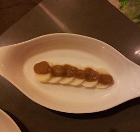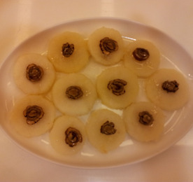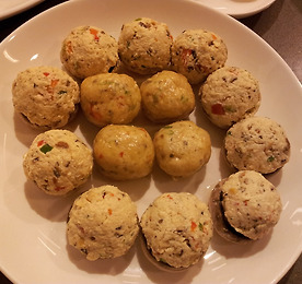 메뉴 : 참마찜 재료 : 참마 200g, 표고버섯 2개, 미나리 3줄기, 청,홍,노랑 피망 1/4개씩,생강즙 약간 양념 : 참기름, 소금, 후추가루 각색 피망은 씨를 제거하여 썰어놓고^^ 미나리는 줄기부분만 다듬어 깨끗이 씻어 3cm 정도의 길이로 썰어 넣는다. 표고버섯은 기둥을 떼어 내고 썰어서 소금과 후추가루 넣고 간을 해둔다^^ 참마는 깨끗이 씻어 껍질 벗긴 후 강판에 갈아 소금,생강즙,참기름을 넣어 버무려 놓는다. 오목한 그릇에 마 와 준비해둔 나머지 재료를 넣고 골고루 잘 섞어 버무린 다음 김이 오른 찜통에 약 20분 정도 찌면 맛있는 참마찜 완성^^~**