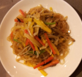 메뉴 : 김치잡채 재료 : 당면 200g, 숙주 100g, 노란 치자 단무지50g, 익은 포기 김치 4잎, 청,홍 피망1/2개, 표고버섯 약간 양념 : 맛간장 1컵, 설탕 1큰술, 식용유 1큰술, 참기름, 깨소금, 소금,후추가루 김치는 양념 떨어내고 물에 담가 신맛 짠맛을 뺀 후 물기를 꼭 짜서 0.5cm 두께로 채 썬다. 숙주는 머리와 꼬리를 떼고 씻어 끓는 물에 소금 약간 넣어 살짝 데친 후 참기름 소금으로 밑간 한다. 단무지 각색 피망 같은 크기로 채썬다. 달구어진 팬에 피망 김치 각각 아삭아삭한 맛이 살아있게 살짝 볶는다. 표고버섯 채썰어 밑간하여 볶아 두고~ 팬에 분량의 맛간장과 식용유 설탕 넣어 끓으면 당면 넣고 볶아 낸다. 볶아진 당면에 준비한 재료 모두 넣어 참기름 후춧가루 깨소금 넣고 잘..