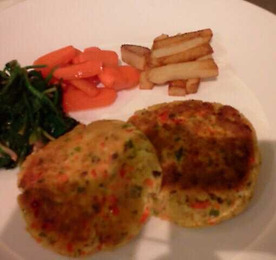 메뉴 : 두부스테이크 재료 : 두부 1모, 표고버섯 3개, 청홍피망 각1/2개씩, 빵가루 2큰술, 양파 1/2개, 참기름 1큰술, 소금 후추 약간씩, 식용유 적당량, 녹말가루 2큰술 곁들일채소 : 시금치 한줌, 당근 20g, 감자 1개, 버터 1작은술, 소금 소스 : 스테이크 소스 [만들기] 두부는 으깬 다음 면보로 싸서 물기를 꼭 짠다. 표고버섯은 곱게 다진 후 참기름 소금으로 밑간 한뒤 살짝 볶는다. 양파 청홍피망도 다진다. 메뉴 : 두부스테이크 큼직한 볼에 준비한 재료를 넣고 치대다가 마지막에 소금과 후추가루로 간을 맞추고 동글넓적한 모양으로 빚는다. 팬에 식용유를 두르고 두부를 올려 뒤집어 가며 노릇노릇하게 익힌다. 시금치는 데쳐서 버터에 소금간을 하여 볶는다. 당근은 설탕과 소금을 넣어 달콤하게..